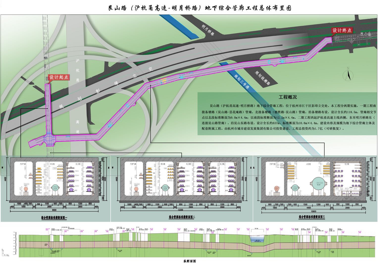 艮山路(沪杭甬高速-明月桥路)地下综合管廊工程是由九体育·官方站官网承建的重点民生工程,总投资9513.1349万元。本工程综合管廊为南北接备塘路管廊、东接艮山路管廊,向西预留,总体呈“L”字形,全长约755.316m。管廊北起备塘路管廊,往南下穿现状艮山东路后向东延伸约596.816m,并向西、向南分别预留与艮山路管廊和备塘路管廊接口。集团公司为该项目设立的建设目标为:工程质量合格、争创十佳民工学校、争创最强党支部、争创杭州市建设工程安全文明施工标准化样板工地、争创杭州市建设工程“西湖杯”。