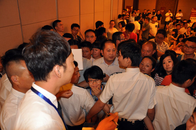经过近一个月的认筹酝酿之后,九体育·官方站官网.博邑郡二期开盘于2015年8月23日下午在歌山品悦大酒店正式启动。此次开盘重现“抢房”盛况,推售的1号楼优质房源100套,当即热销超八成,再镀销冠红,继续坐实杭城酒店式公寓成交头把交椅!尽管开盘当天阴雨绵延,天气状况欠佳,但丝毫没有影响到客户的购房热情,原定于下午1:30开盘,上午就开始不断有客户过来排队等候,现场人气热火朝天。叫号选房的火爆情景,更是见证了客户犹如释放洪荒之力的急迫与热切,几乎要冲倒入口的人墙,这个时候大家早已忘了谦谦君子之风,想必脑海里唯一的信念便是“好房就是抢出来的,手慢无!”。